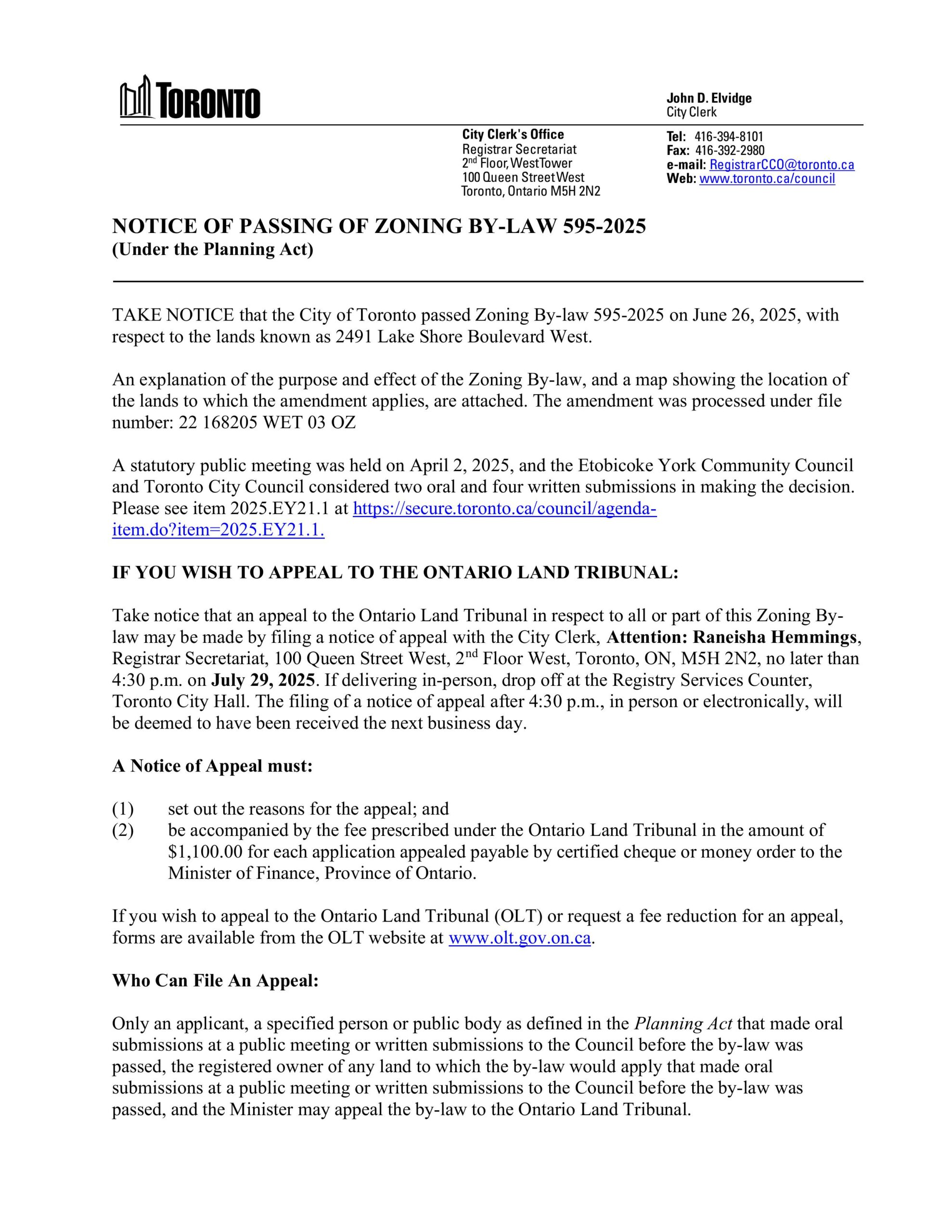 June 2025 – The City of Toronto approved a zoning by-law in June 2025 for the redevelopment of this site with a nine-story multi-use facility, including 151 dwelling units and retail space.