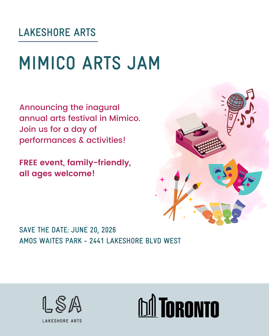 This summer, Toronto will welcome fans from around the world. We’re proud to capture Toronto’s “The World in a City” spirit with LSA’s inaugural annual arts festival: Mimico Arts Jam, taking place on June 20th at Amos Waites Park!